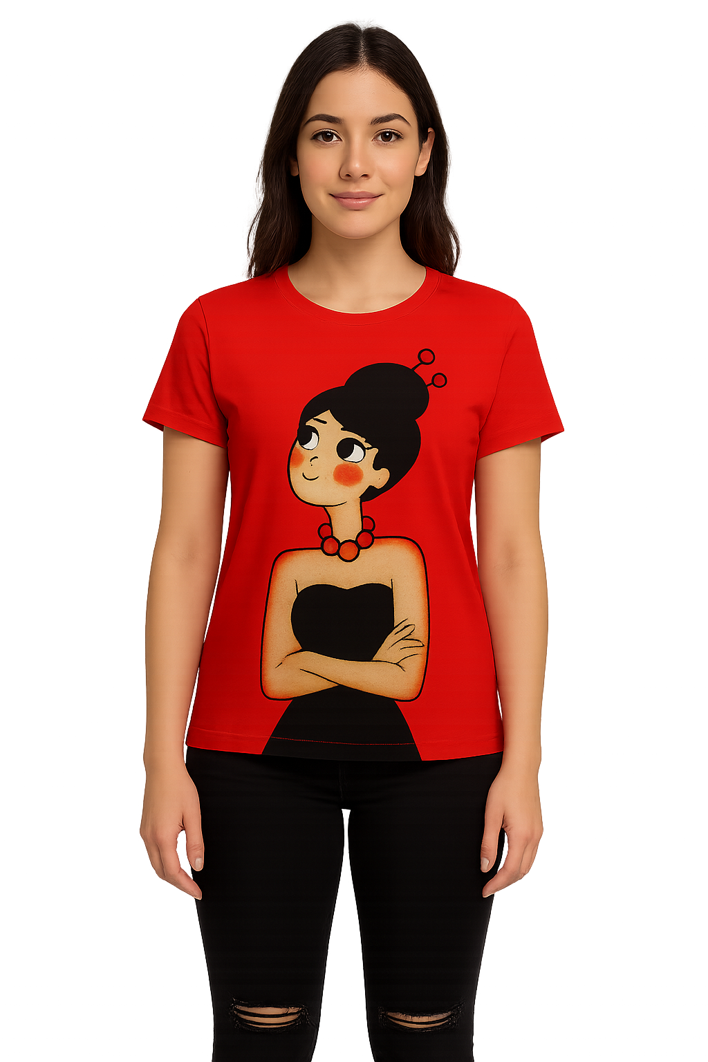 Elevate your everyday with our chic Red printed short sleeved tunic top, designed to blend elegance with effortless comfort. Crafted from a soft, breathable polyester fabric in a dreamy black, this top features: